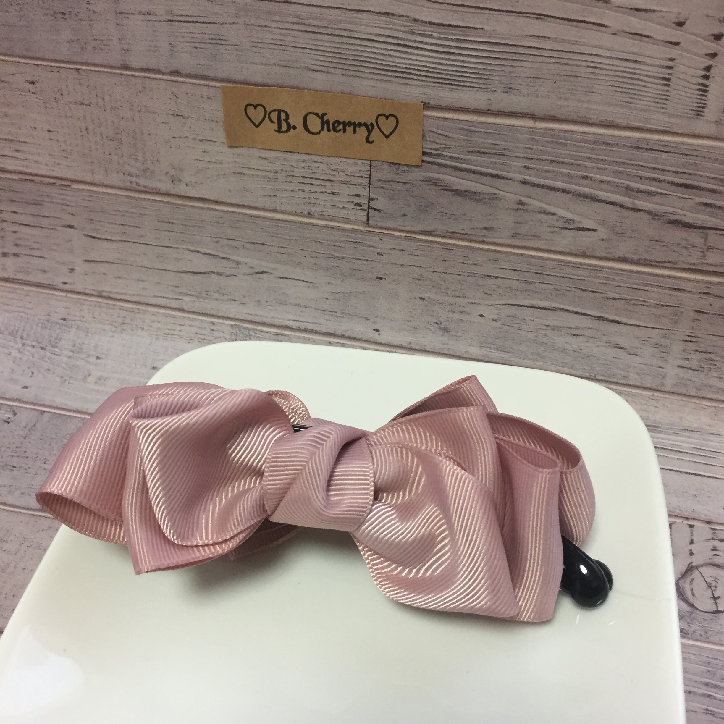 ●スモークピンクのぷっくり、ふんわり可愛いトリプルリボンクリップ