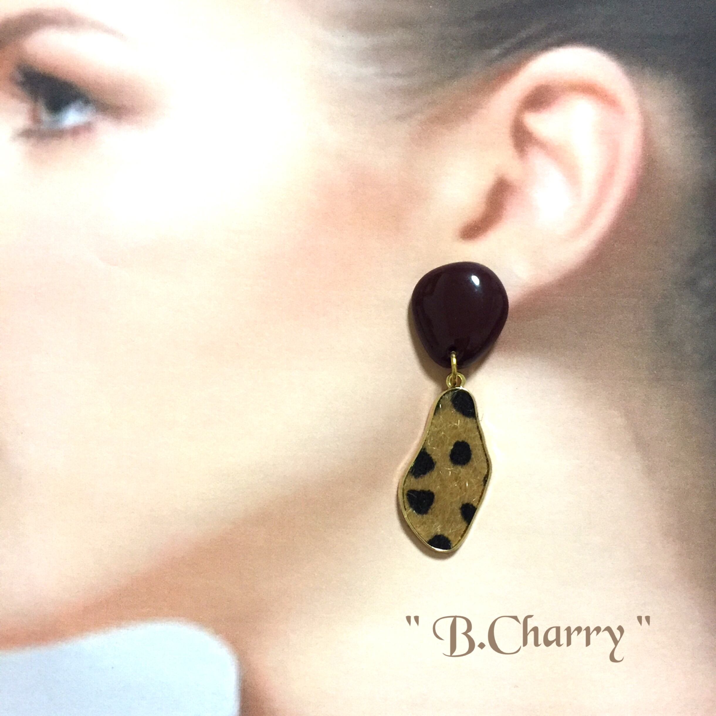 ⚫︎樹脂パーツとレオパーツ柄ファーのピアスです。2 × 5センチ